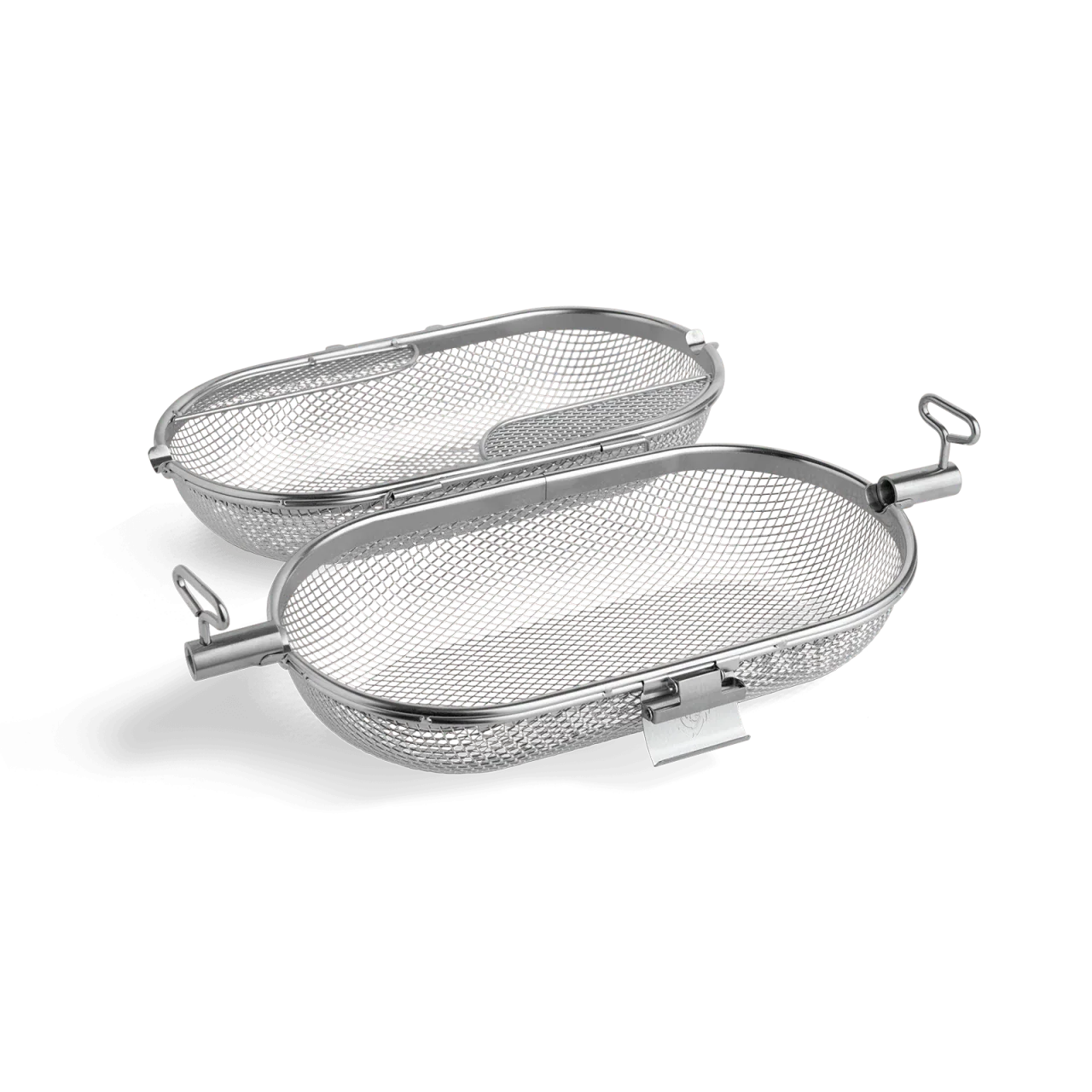 Der Grillkorb passt auf alle BURNHARD FRED‑ und EARL‑Modelle mit Drehspieß sowie auf Rotisserie‑Spieße bis 14 mm Durchmesser - ideal auch bei geschlossenem Grilldeckel. Dank feiner Maschung bleibt alles sicher im Korb, nichts fällt heraus.
