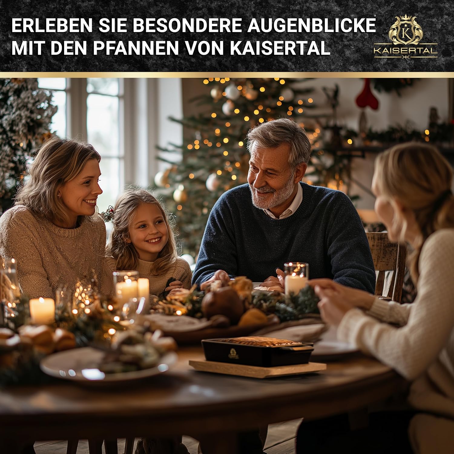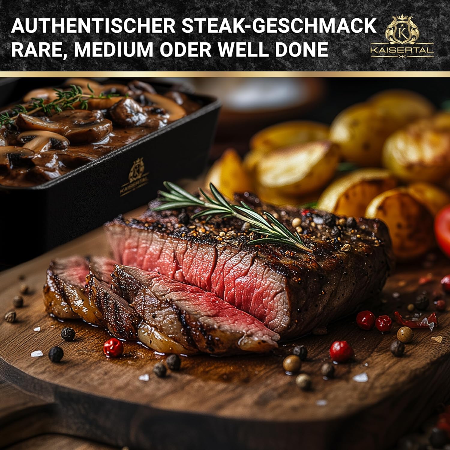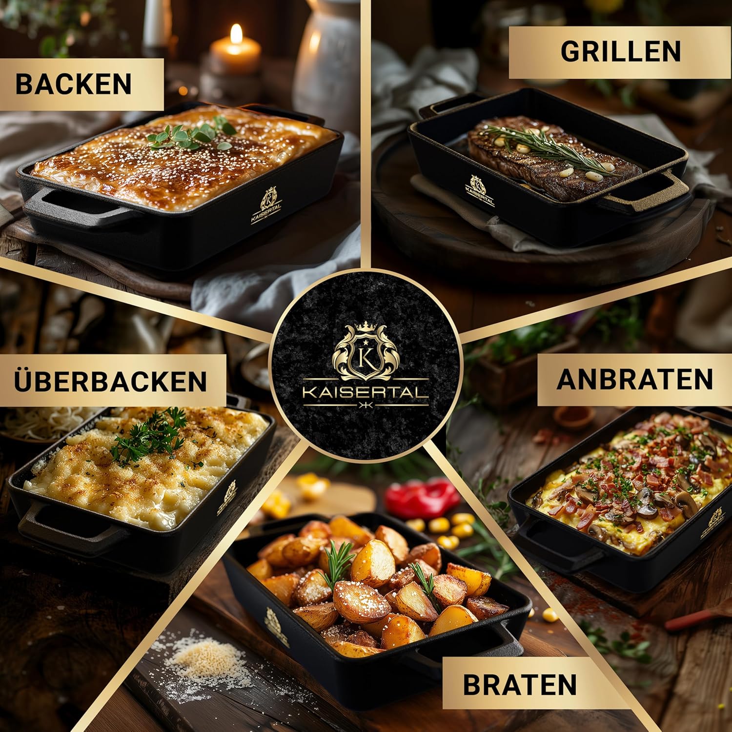 Mit dem KAISERTAL Servierpfannen-Set servierst du Gerichte direkt vom Herd oder Grill - heiß, frisch und stilvoll. Die beiden quadratischen Pfannen sind perfekt für Einzelportionen wie Steaks, Bratgemüse oder Gratins. Der Birkenholz-Untersetzer sorgt für sicheren Stand und schützt empfindliche Oberflächen vor Hitze.