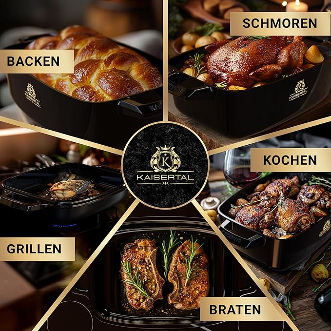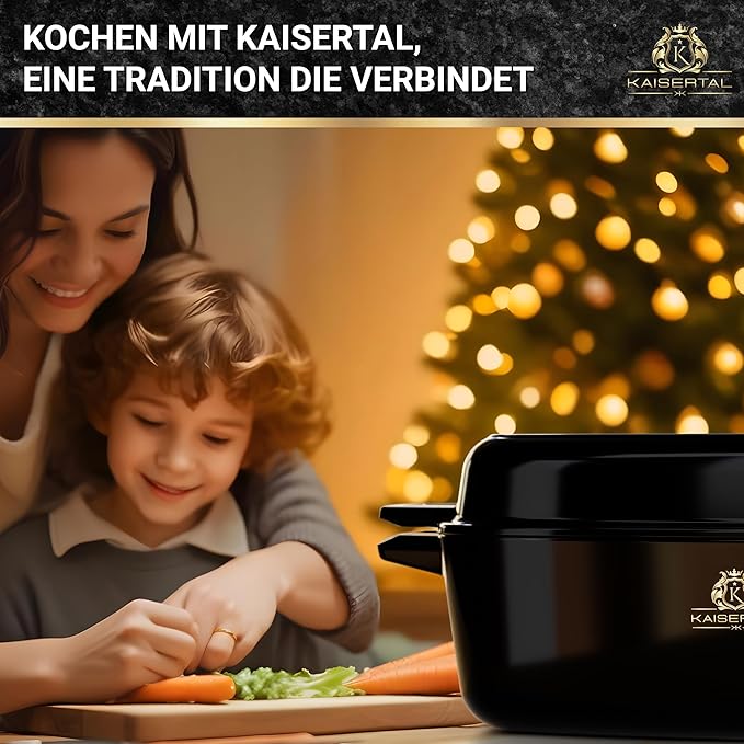 KAISERTAL Gusseisen Bräter mit Deckel - 10 Liter für große Portionen